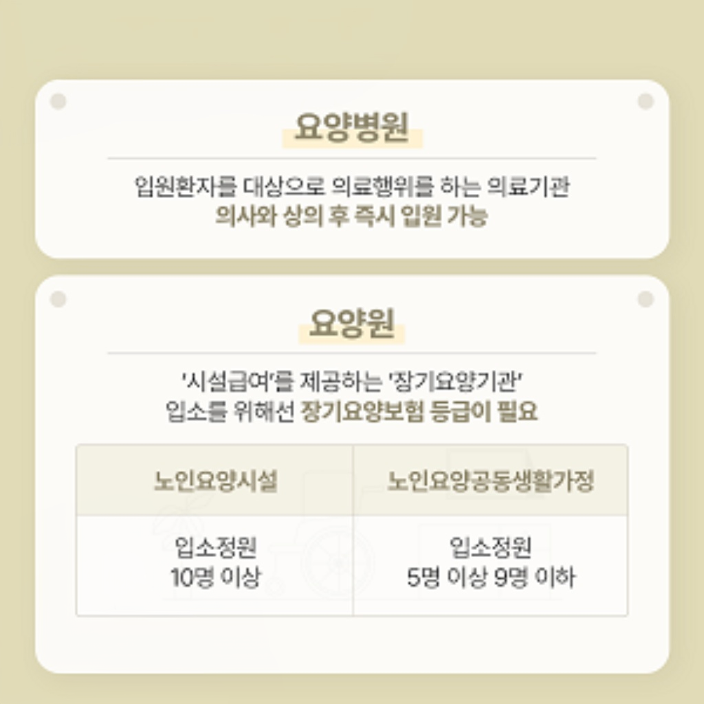 | 구분 | 요양병원 | 요양원 |